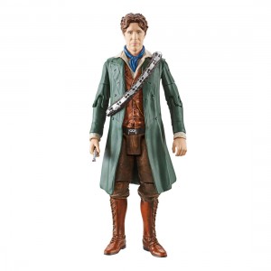 The decoration has been revised and, for the first time, this figure also has the brown satchel. The final figure in this set is taken from The Night of the Doctor, minisode where he sported a worn green overcoat, ruffled tie, bronze waistcoat, and US Army Cavalry boots. This outfit corresponds with his overall weary appearance, during the Time War.