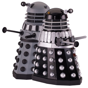 Featuring one Time War survivor Dalek and one Black Dalek, these Daleks herald back to the start of the New Series in 2005. During 2004 the props department were challenged with coming up with a new Dalek design for the series. The feeling of those involved was that the Dalek needed updating to a more modern look.